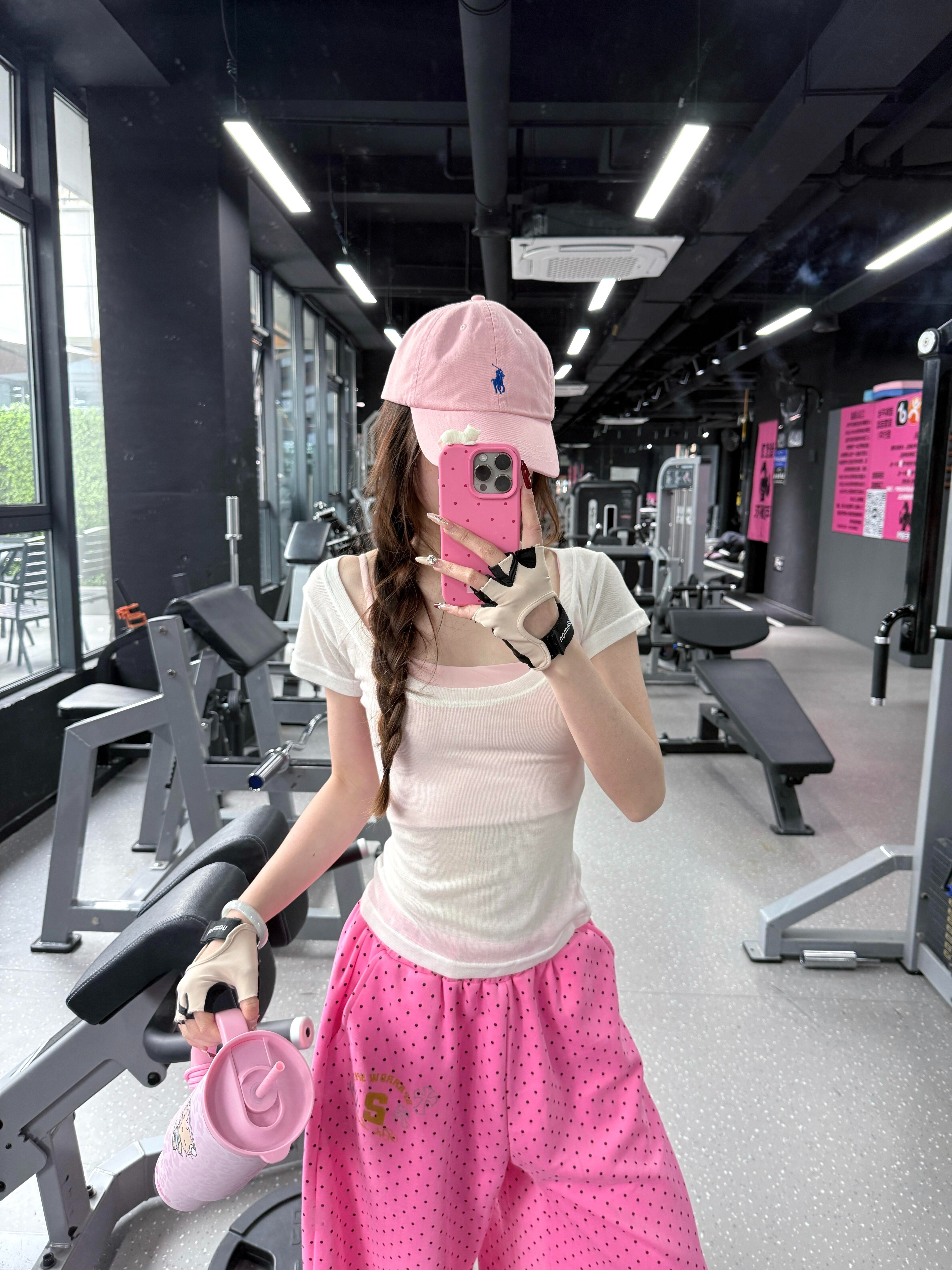 嘻哈爵士舞运动裤宽松慵懒松弛感辣妹粉色波点印花卫裤女