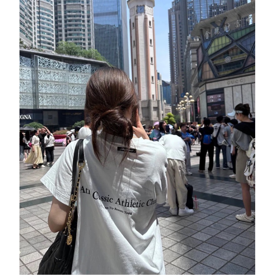 T恤宽松短袖,前后印花 加胶标 上衣