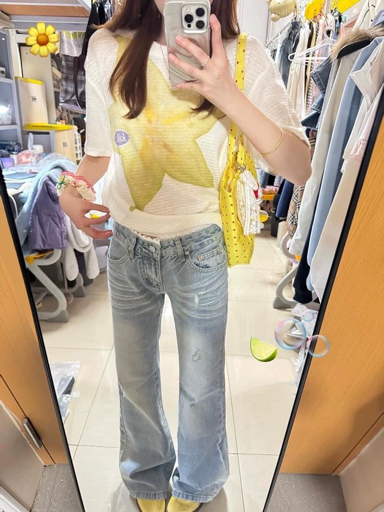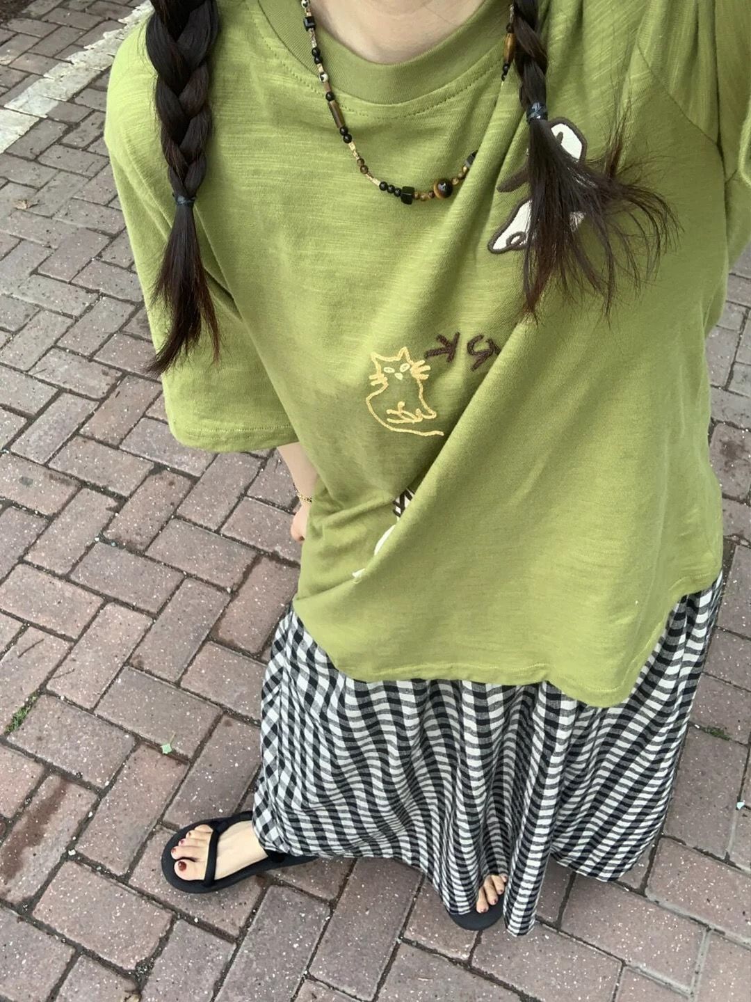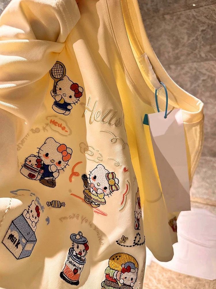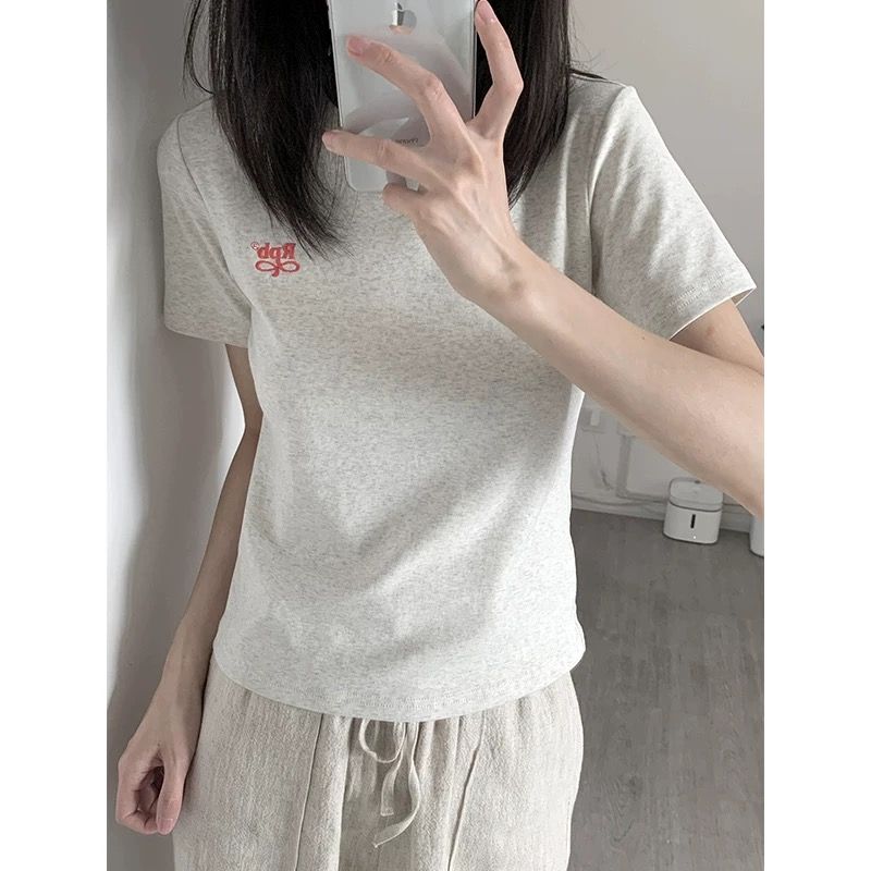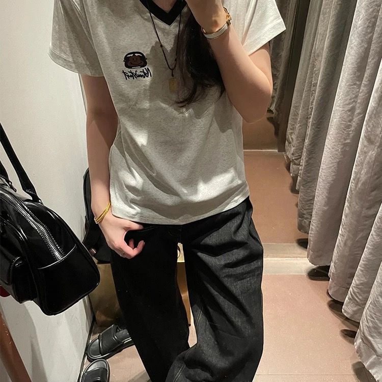 宽松版 刺绣 T恤上衣短袖