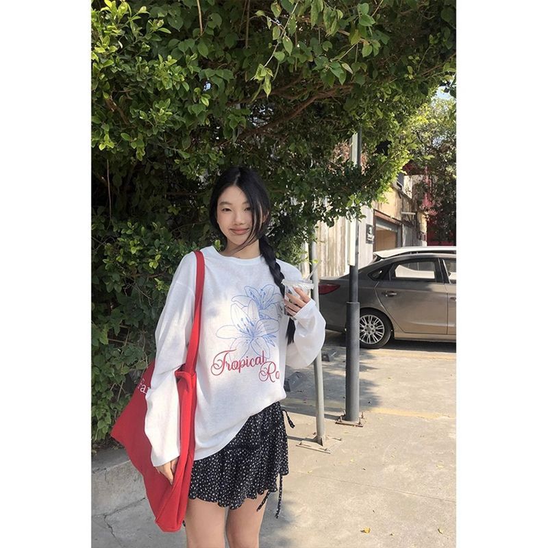夏季新款卡通印花宽松长袖防晒罩衫女慵懒风上衣女