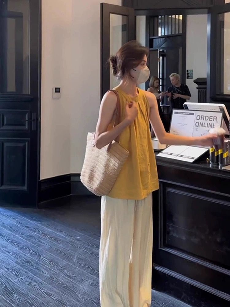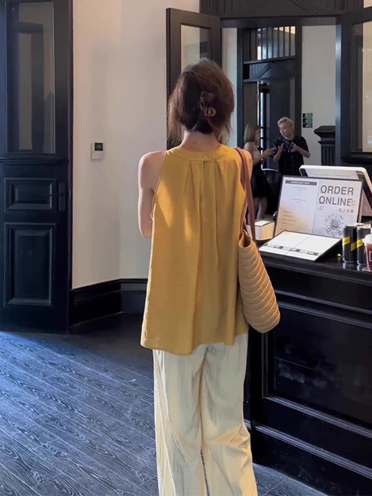 挂脖吊带背心女夏季绝美上衣宽松无袖衬衫