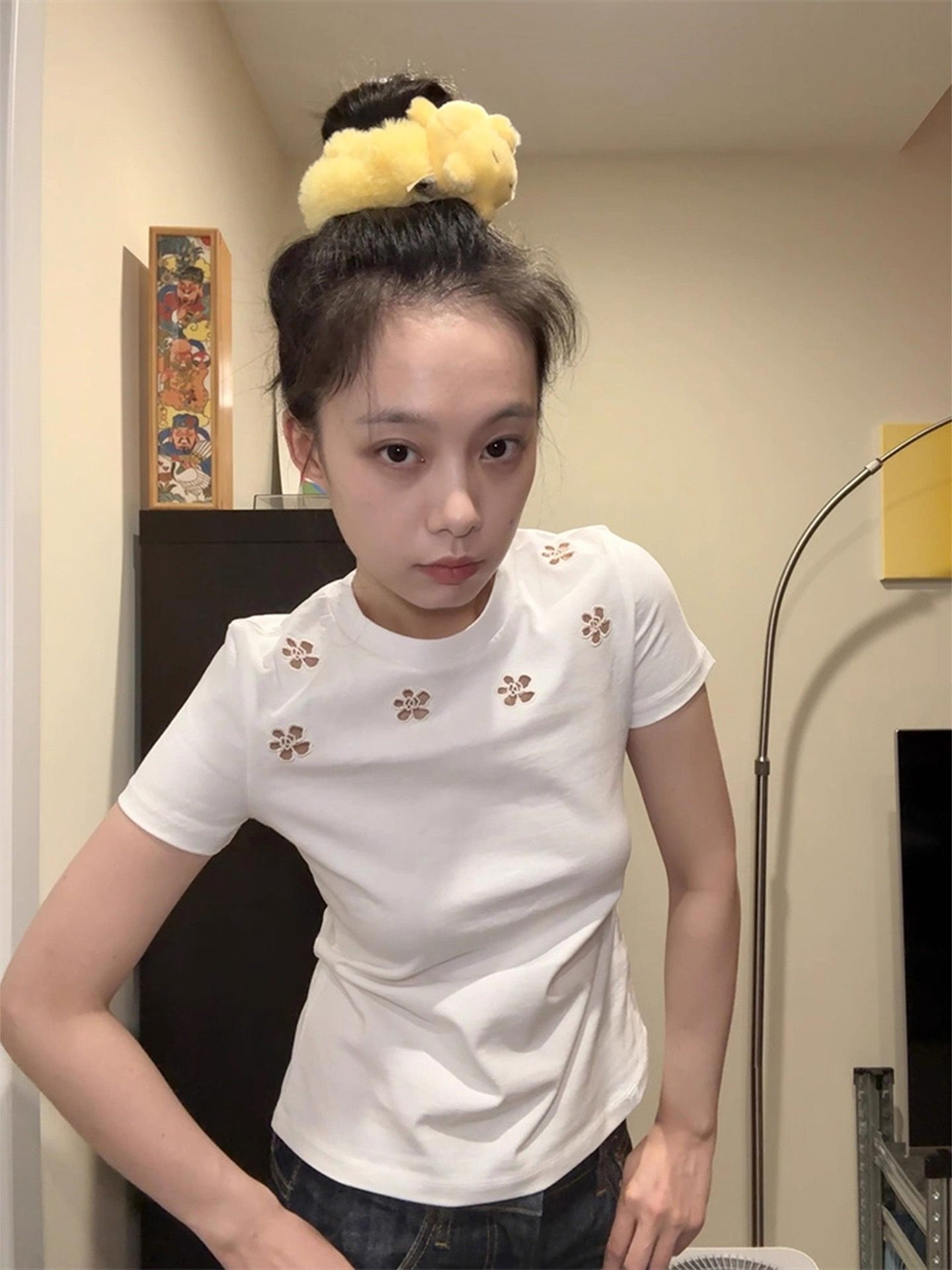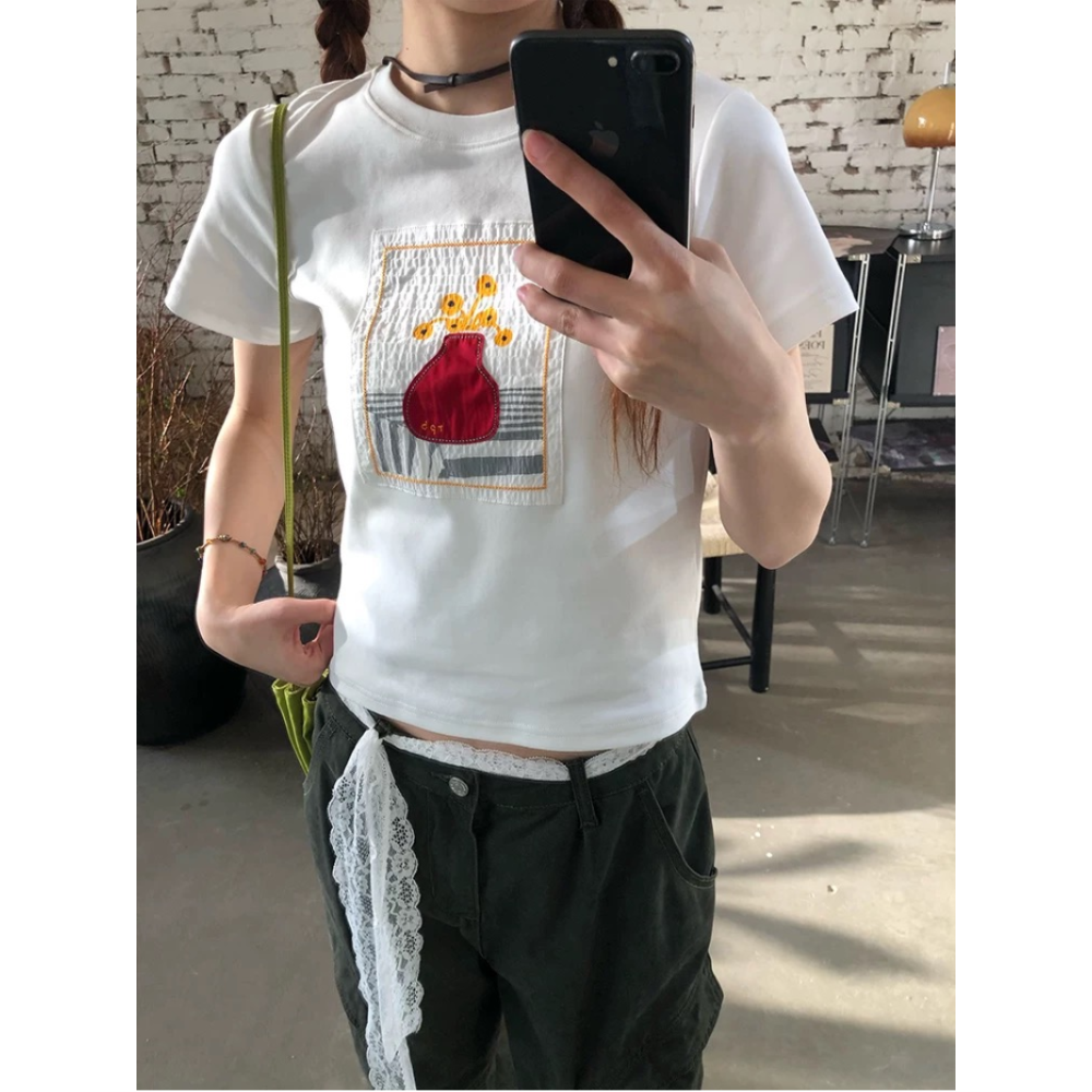 T恤修身短袖, 绣花 上衣