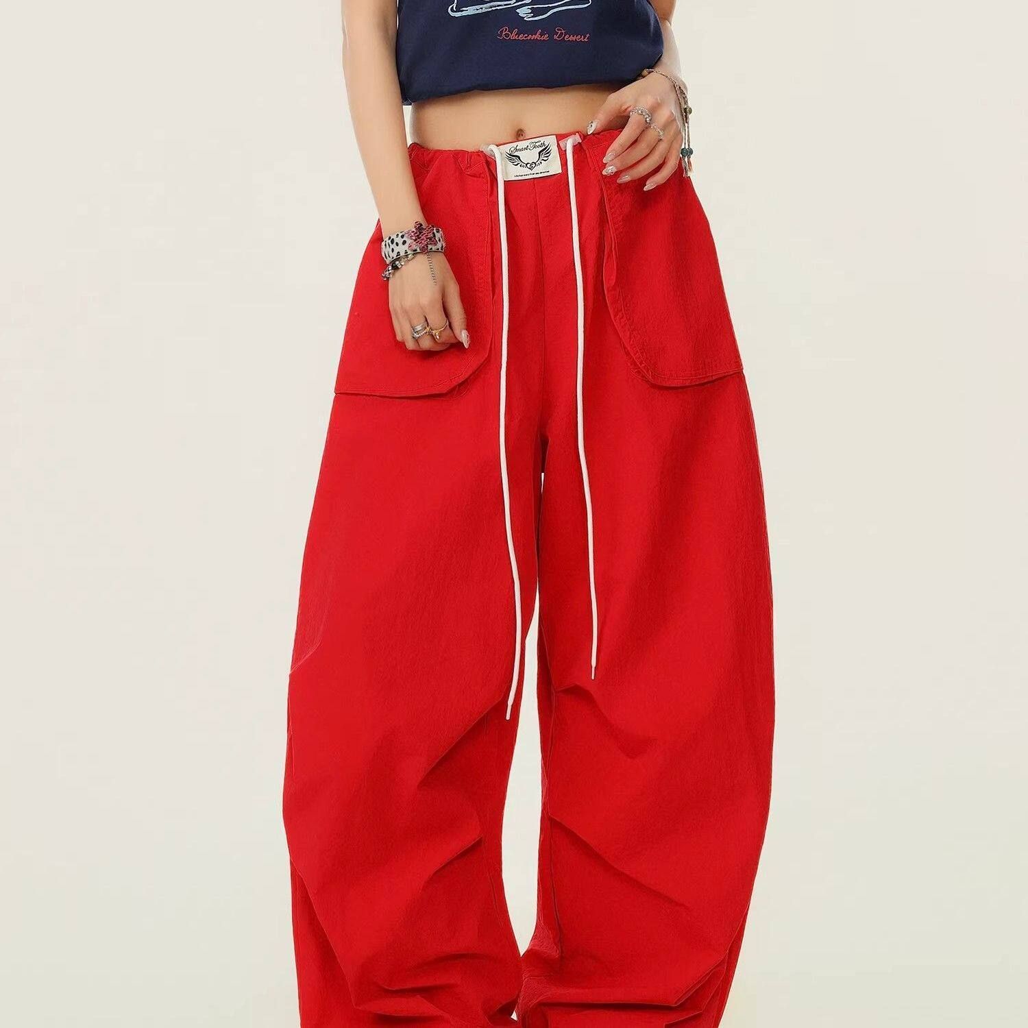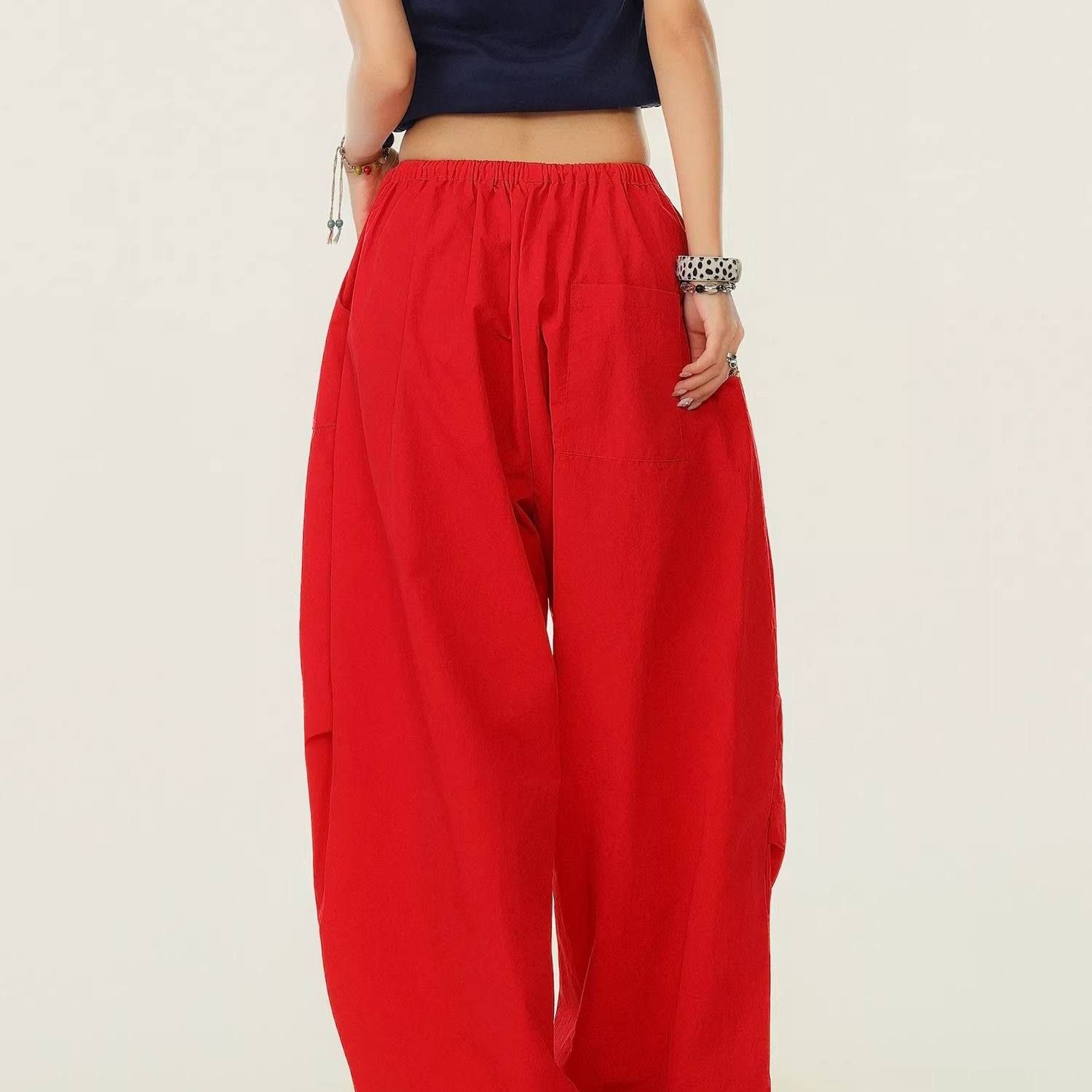 美式休闲裤女夏季碎花蝴蝶结宽松运动裤直筒工装裤垂感长裤