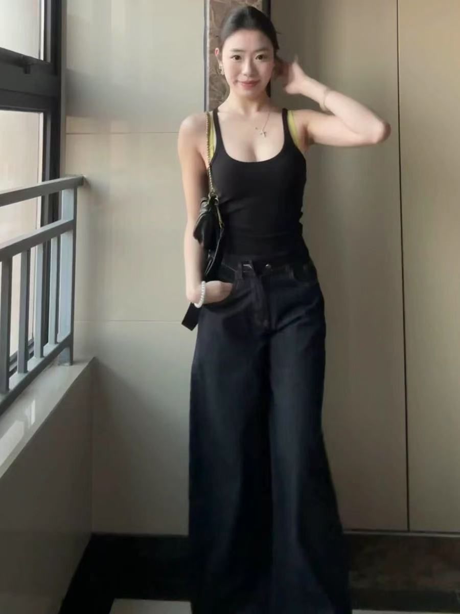 美式复古牛仔裤女韩版辣妹高街修身显瘦阔腿长裤潮