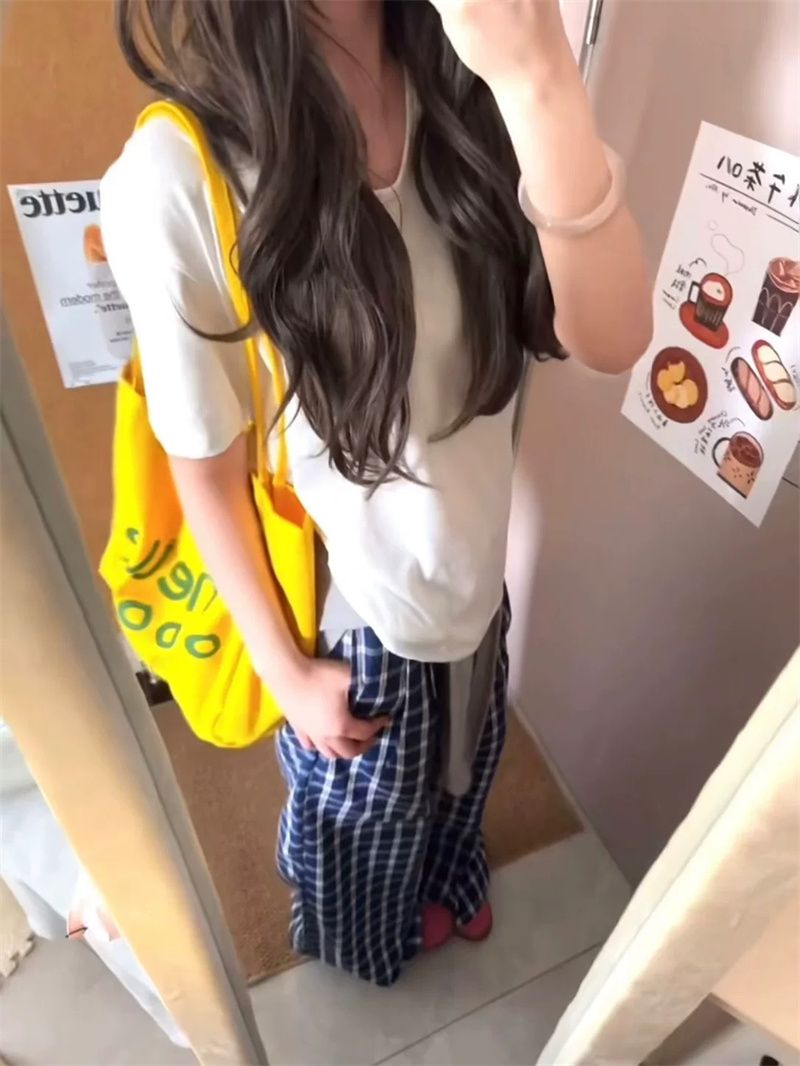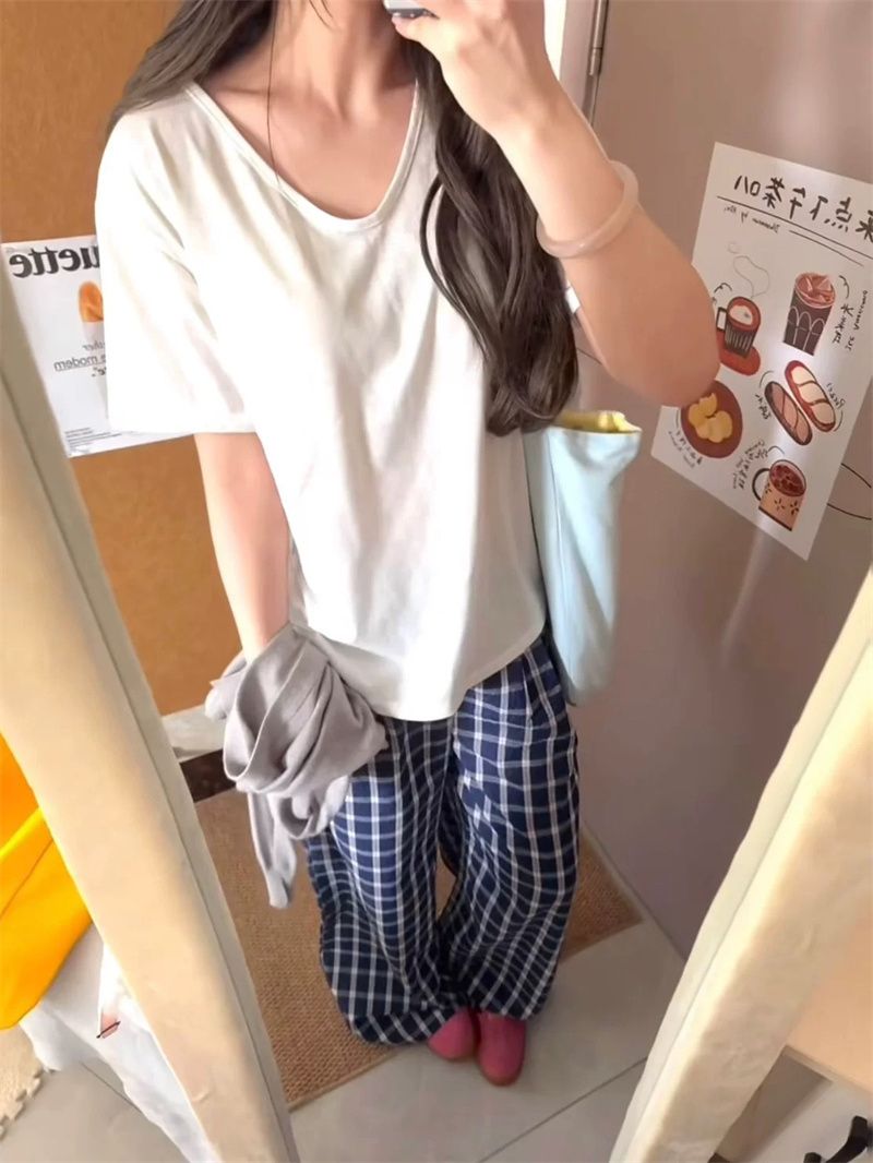超显瘦夏日垂感正肩收腰V领短袖打底基础小心机T